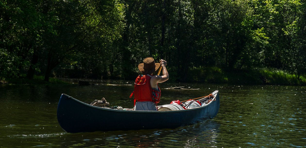 Une belle flotte de canoes, de Nova Craft, des 15-16-17, venant de chez Passion Nature. De très beaux bateaux qui savent conserver leur glisse, même avec la charge d’une itinérance. Le top pour ce genre de descente !