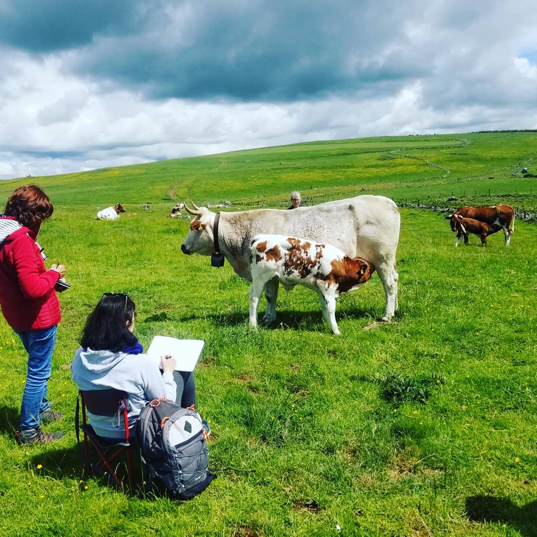 Ce voyage dans le Cantal, nous mènera à nous déplacer dans la vallée de Dienne, sur les crêtes des sommets mais aussi à découvrir une campagne harmonieuse, avec un horizon incroyable tout autour de notre gîte. Ce stage suivra le fil conducteur des paysages des hauts plateaux à peindre ainsi que le croquis aquarellé de la fore. Au printemps le Cantal se couvre de fleurs, une belle occasion de les croquer sous toutes les coutures.